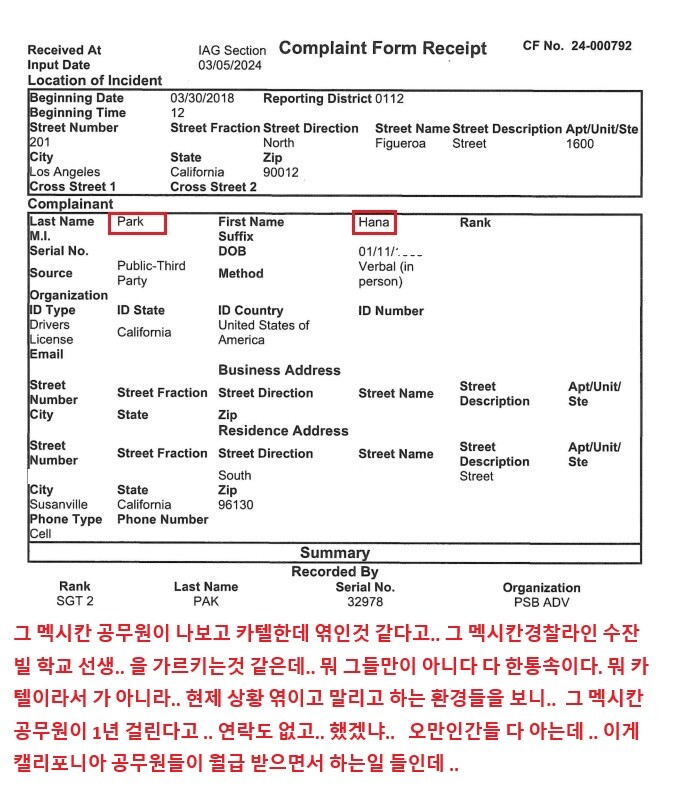 한인 커뮤니티가 놀아서 내 인생이 멕시칸경찰에 의해서 이렇게 되었고