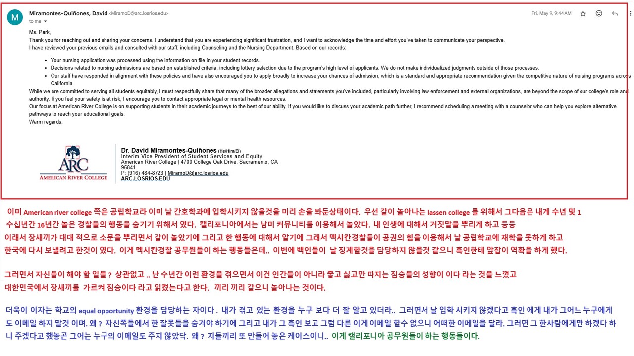 american river college 에서 그 어느 누구에게도 이메일을 하지 말란다 .