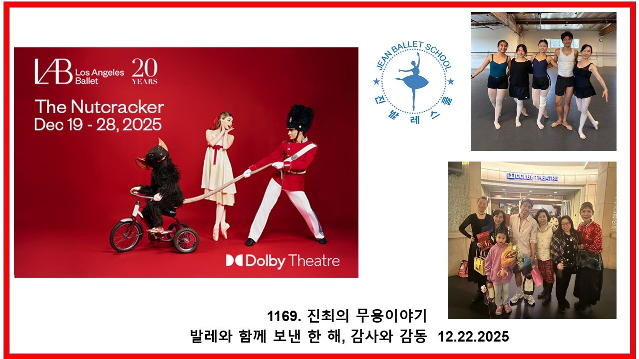이번 공연은 LA 발레단의 무대였고, 장소는 돌비 시어터였다. 무엇보다 이 공연이 특별했던 이유는 우리 진발레스쿨에서 주니어·어린이·성인 클래스를 가르치는 제이콥 발레 선생님, 그리고 연습실에서 늘 성실하게 연습하던 학생 에린이 그 무대에 함께 서 있었기 때문이다.